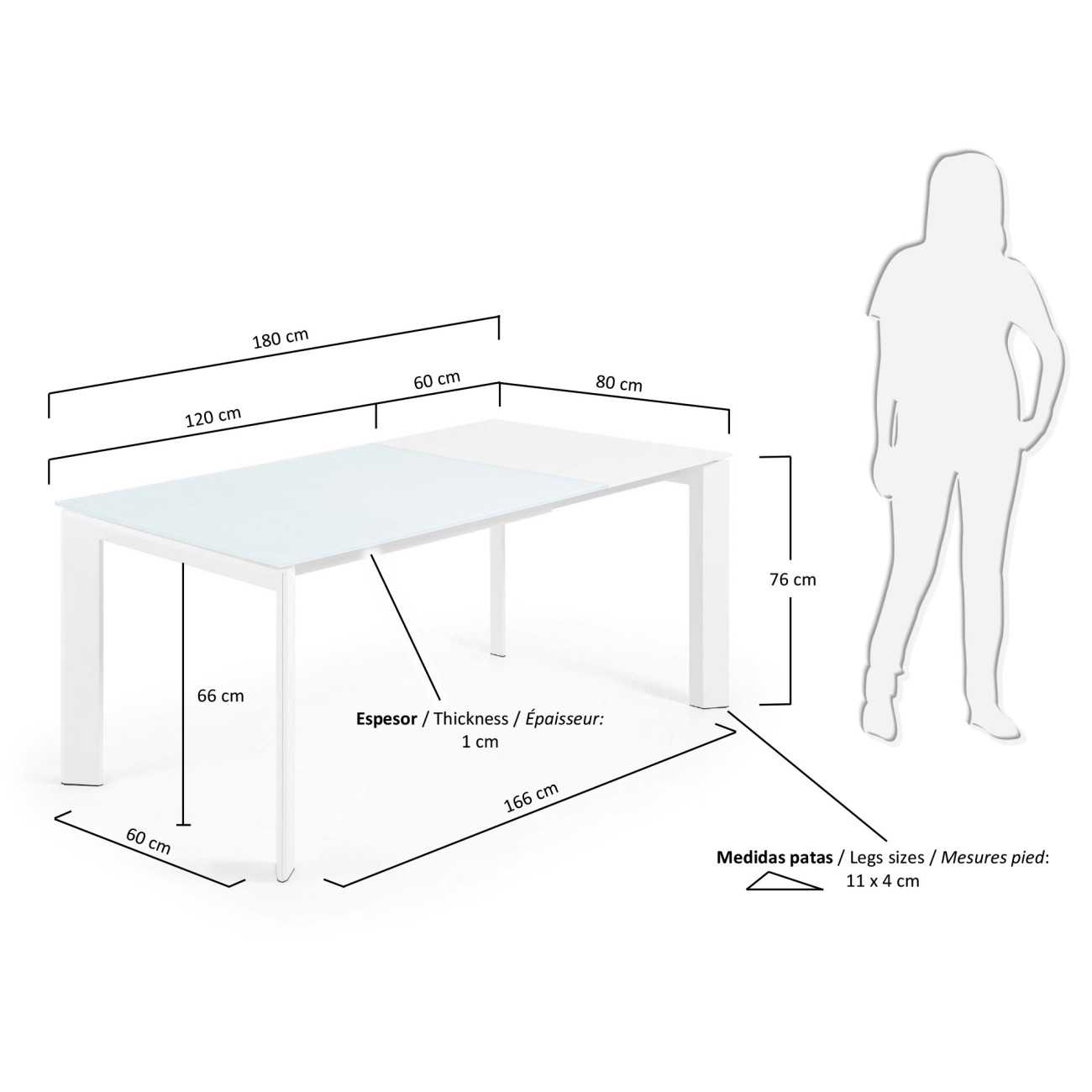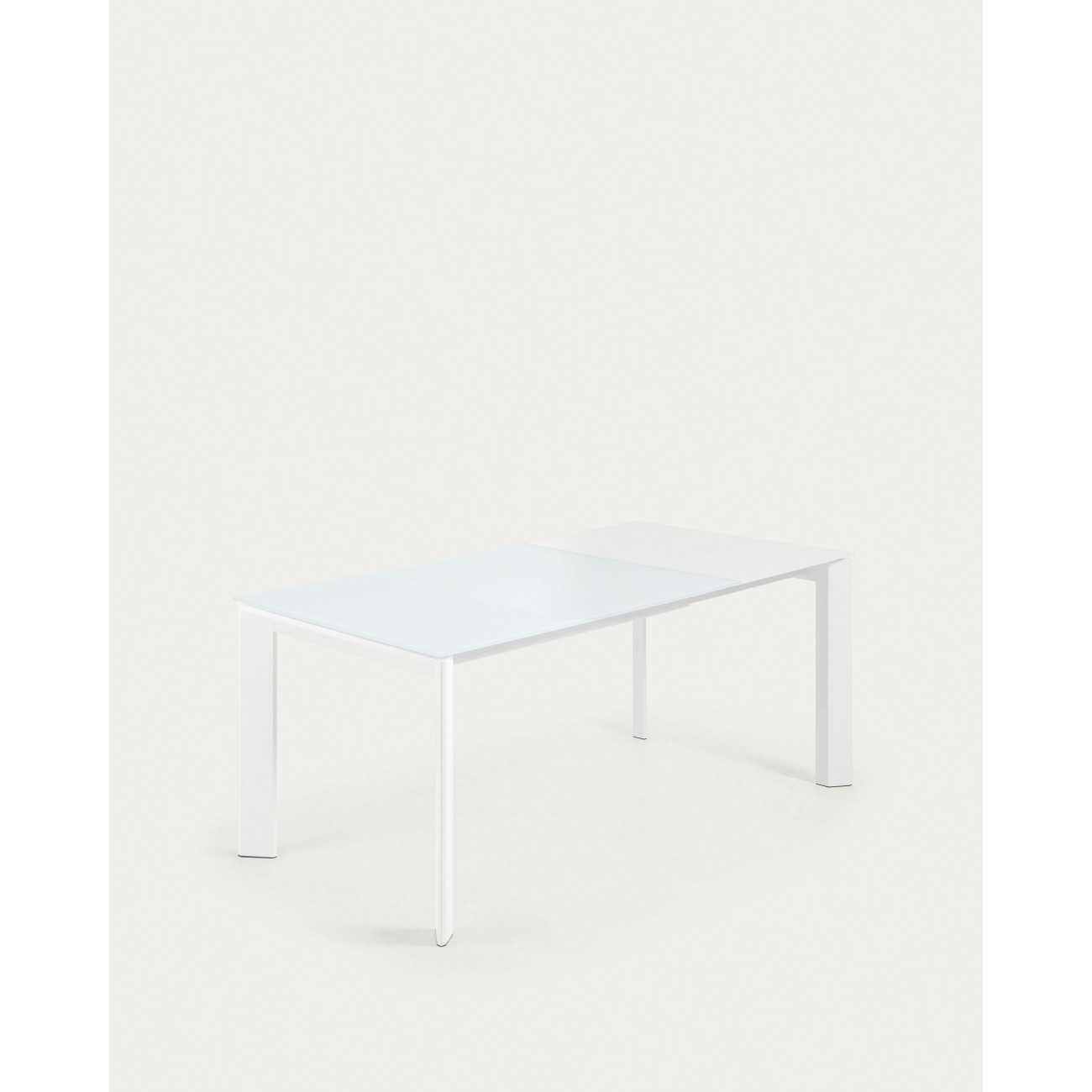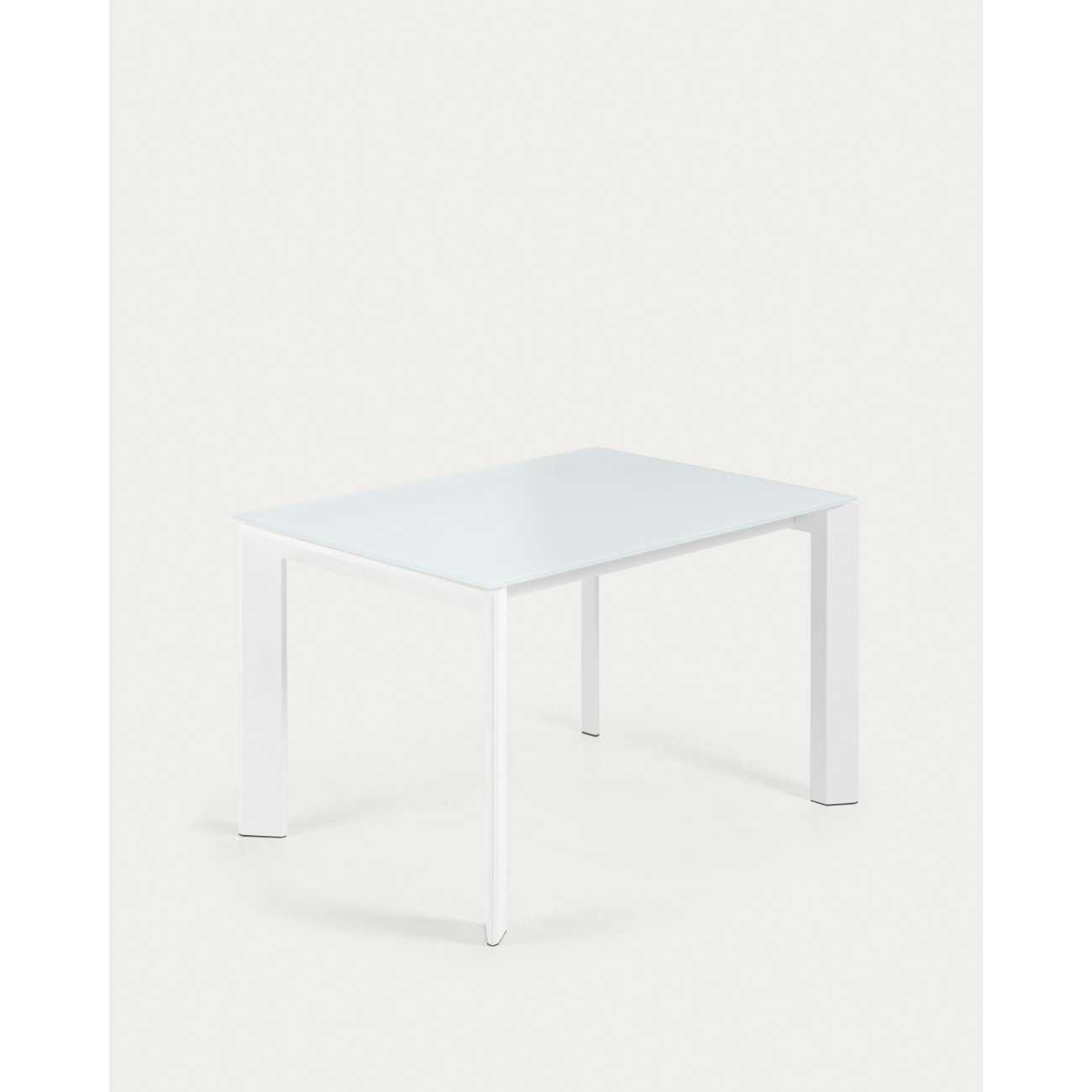 TABLE EXTENSIBLE AXIS 120-180 X 80 CM EN VERRE BLANC ET PIEDS EN ACIER FINITION BLANC